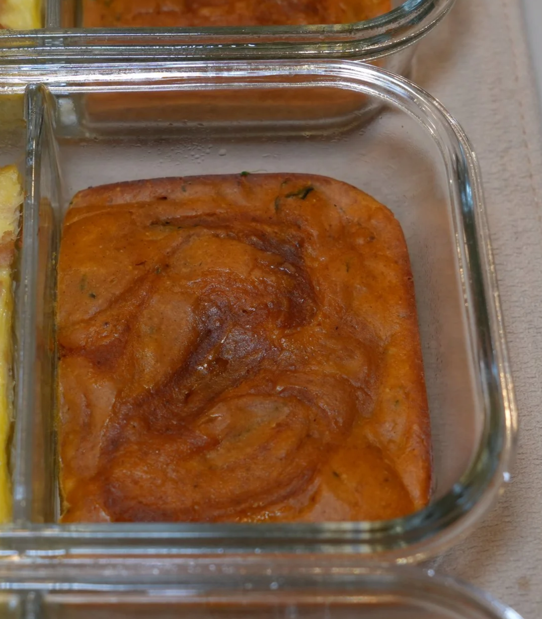 Spray coconut oil on glass meal prep containers and portion the batter evenly.